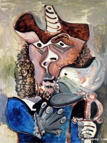 毕加索一生中风格变幻莫测,关于他的各种艺术难题至今仍无人能够完整解读。1967年以后的毕加索在风格上继续创新的同时,在题材上却一直对“步兵”形象情有独钟——深埋在画家灵魂深处的“西班牙情结”愈老愈精神,“步兵”形象却随着画家死神的临近而渐趋衰颓,就象这位《带鸟的步兵》。