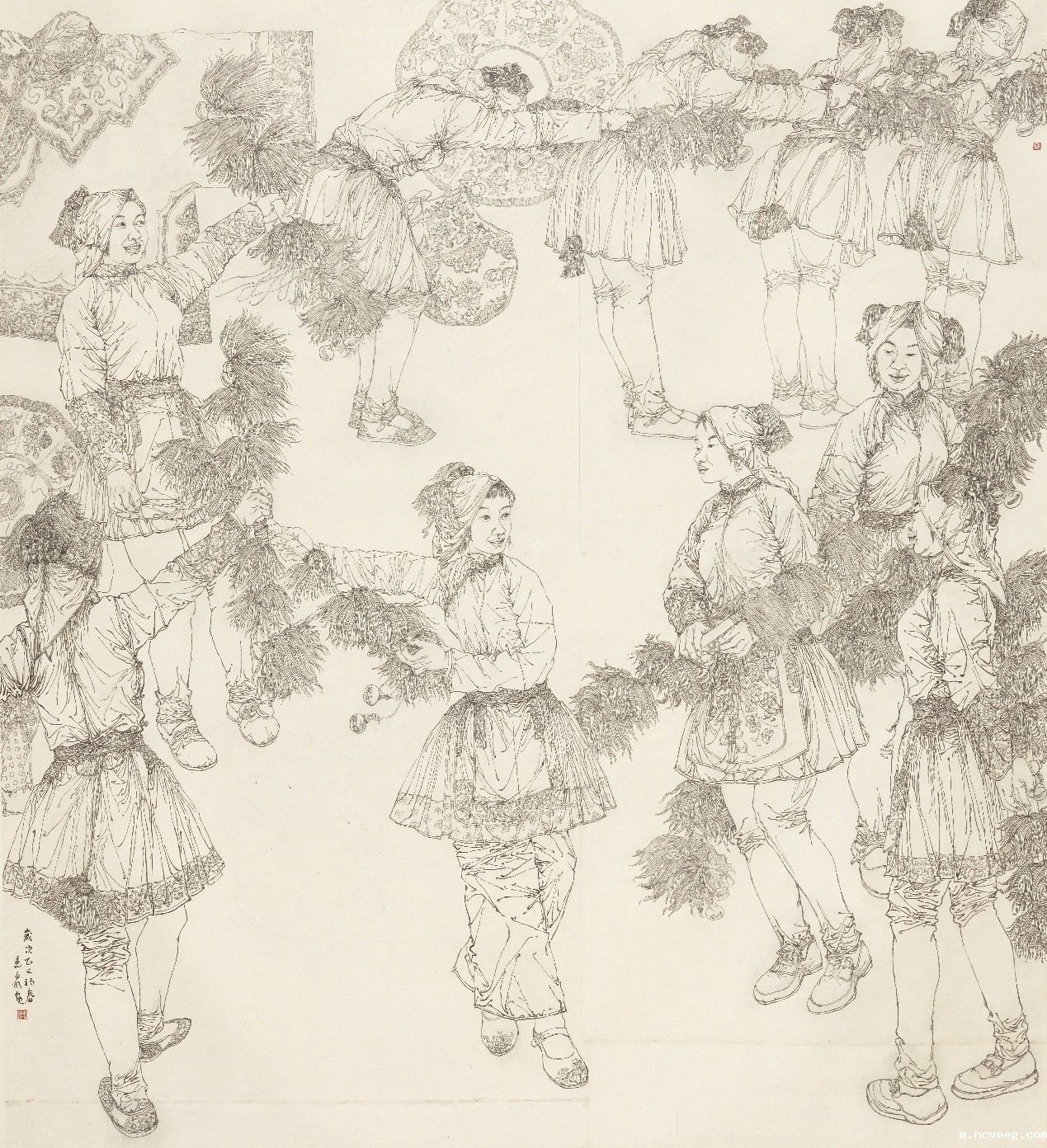 本届工笔画作品展所呈现的,正是这种传统的工致之美和深度的时代思考相交织的斑斓视觉图景,其中不仅有对传统工笔绘画历史文脉的续接,更有对当下现实生活的关注。许多作品具有题材之新、语言之变、意蕴之深的品质,或在微观的细致刻画中提炼出宏观的时代之思,或于精妙的色彩晕染里寄托厚重的人文关怀,赋予这门古老的绘画艺术以崭新的叙事维度和饱满的情感深度。